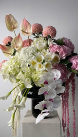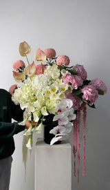 The flowers and vase used may vary depending on availability.