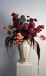 The flowers and vase used may vary depending on availability