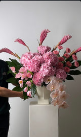 The flowers and vase used may vary depending on availability.