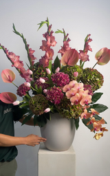 The flowers and vase used may vary depending on availability.